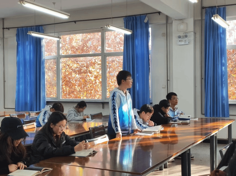 活动伊始,主持人为大家梳理了《老人与海》的创作背景与文学价值,短短几分钟便勾起了大家的讨论热情。沉浸式阅读环节聚焦“老人与鲨鱼搏斗”的经典片段开展。翻书声里,仿佛能看到圣地亚哥握着渔叉、与鲨鱼殊死对抗的身影,能感受到他从疲惫到坚定的心理转变。趣味问答环节点燃了大家的互动热潮,同学们在你一言我一语中把关键情节嚼得更透、悟得更深。深度探讨环节中,大家各抒己见谈及自己对主人公圣地亚哥的性格分析。尤其是圣地亚哥与鲨鱼的搏斗场景给大家以极大的精神鼓舞,一致认为这是对命运的较量。